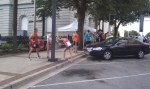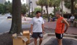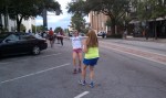 5:51??!! Ruh roh raggy. This is suicidal pace for me under any conditions but particularly when its over 80 degrees. But apparently my head is both gigantic in both the literal and figurative sense, because I don’t slow down…yet. As we make the turn onto Greene and head back on Sumter that nice breeze we had seems to vanish. It gets real hot, real quick. Whats worse is that I feel completely alone at this point. I can see Yerger and Claudia about 50 meters ahead and can hear no one behind me. But I know the Tisdale and Weis combo cant be too far behind. Unfortunately I have no sense of my pace anymore, and no one to push me. I near the next turnaround, which coincides with the 2 mile mark. I ‘m desperately afraid of Meg paying me back for passing her at this point last year, especially since I trash talked about it on facebook. I dont look at my Garmin this time, though later I see I dropped it down about 30 sec (6:22)