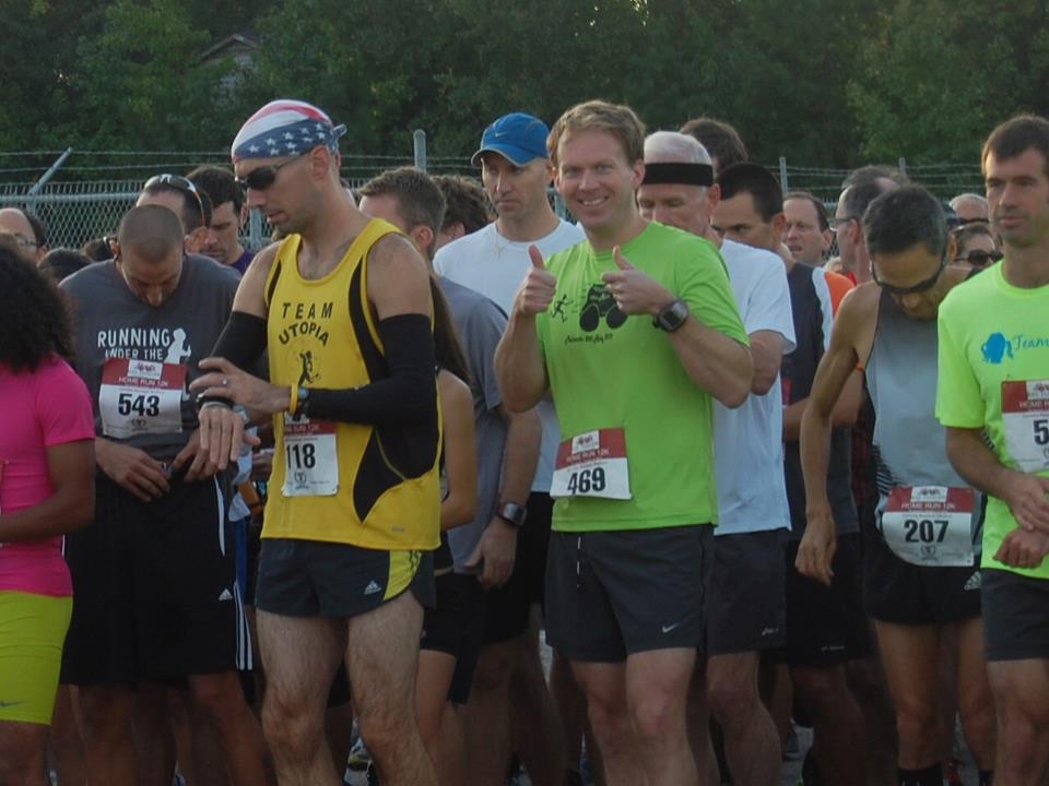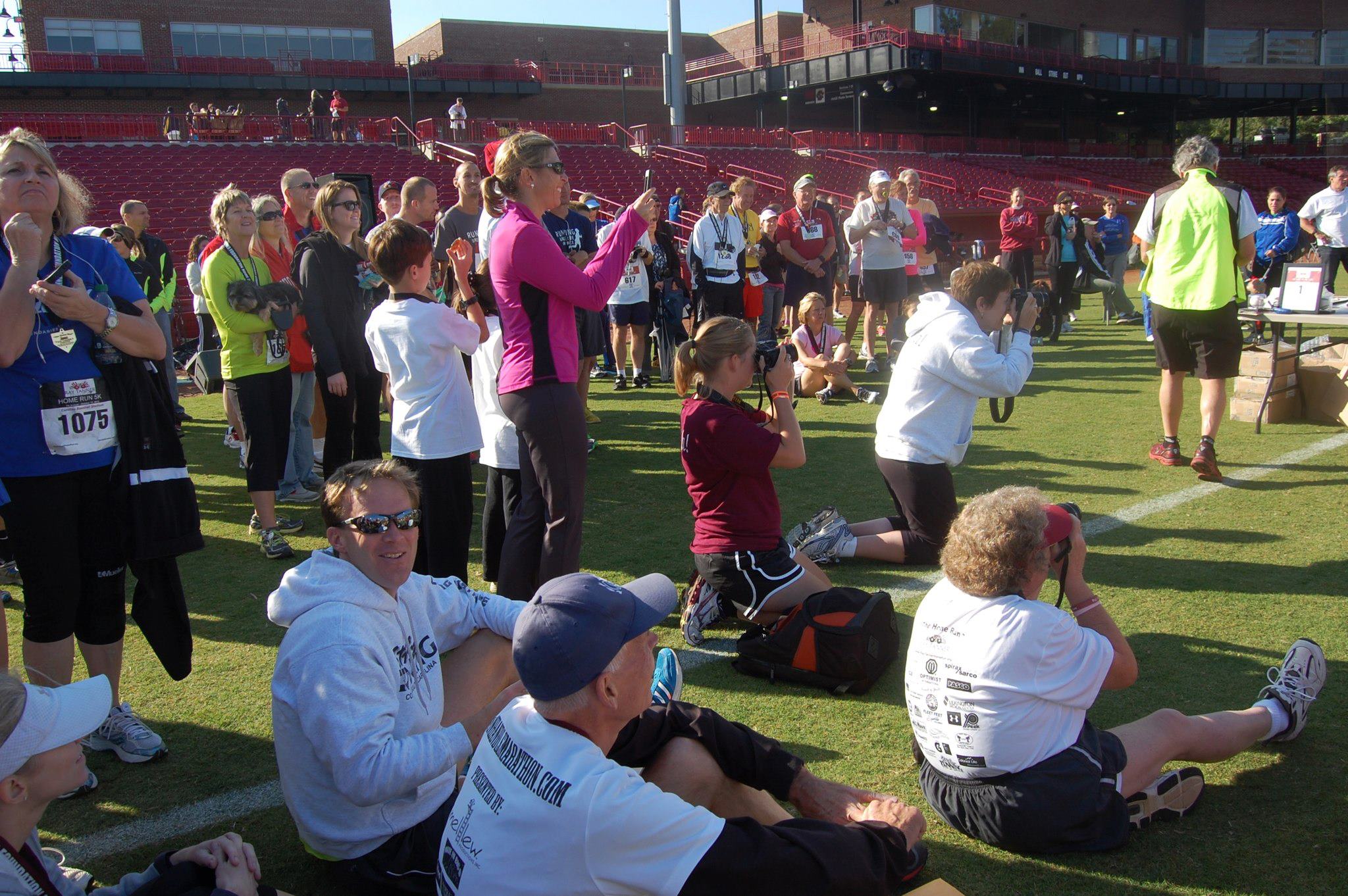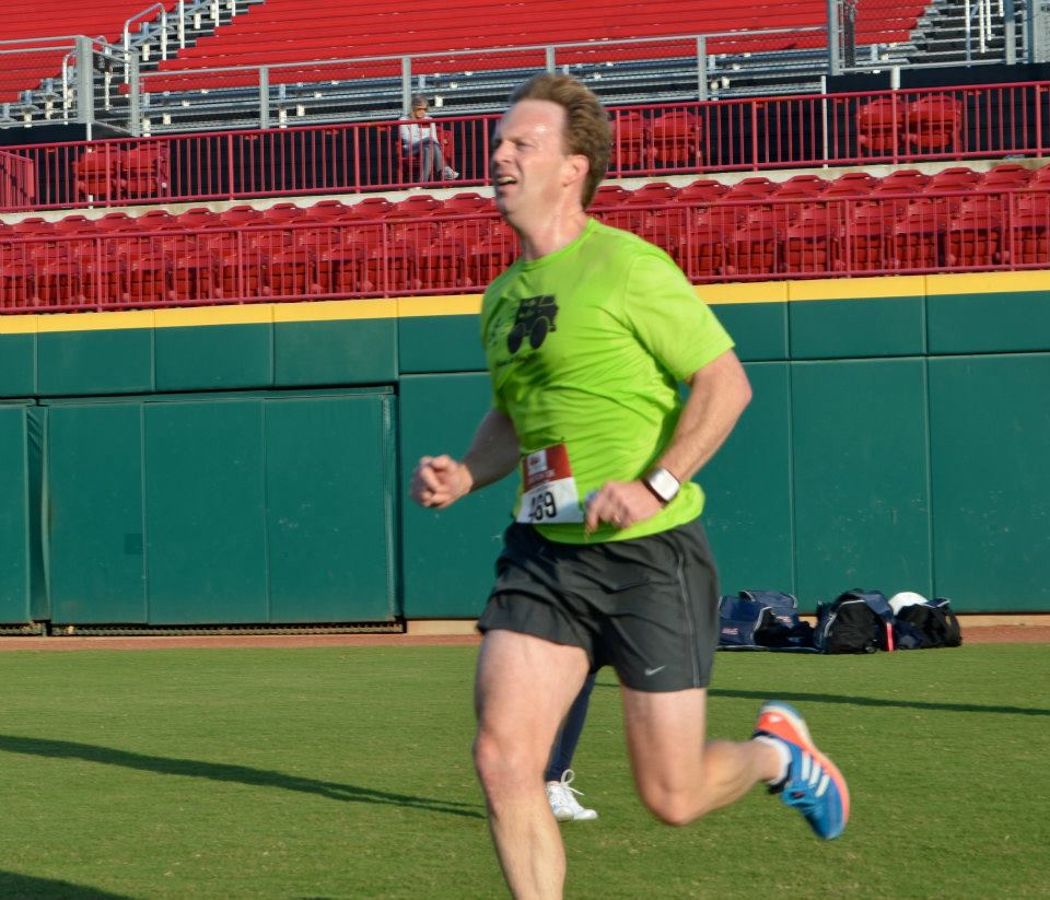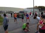 I got to the stadium about an hour early, did a warmup with the Code, Billy, Trophy, Rick, and Larry. I could attempt to name everyone that I saw at the race, but it would be easier to name who I didnt see from the Columbia running community. I have a highly developed sixth sense for seeing 35-39 people, so I could tell it was going to be tough going age group wise. Angel wasnt there…so that was one “way too fast , no way in hell you’re going to beat that guy” out of the way. But..Newly 35 year old Drew Williams and Steven Johnson, along with the Code, basically c-blocked me out of a trophy before I stepped to the start line. The Yerger was also there, but had done 11 miles already, and swore a tempo pace for the race. Which is still pretty fast. And since this race is so big, there were sure to be randoms out there to take away my precious trinkets as well. Damn them.