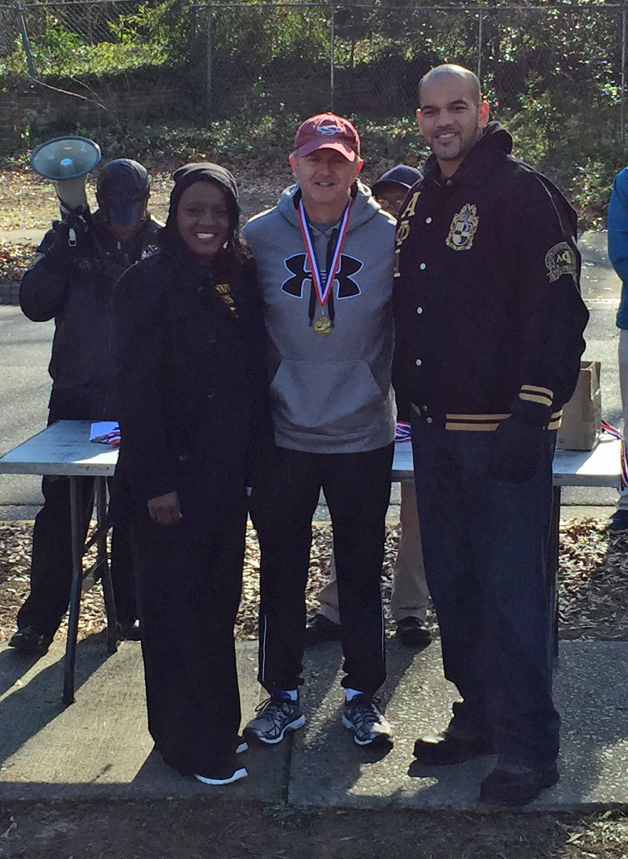 Age group glory: Cotes Royson blazed a 25:42 and a new PR to take second in his age group.  Kyzer “A.J.” Garrick completed his first 5k in 29:33, being paced in by Lisa Smarr. Both got first in age group for their efforts. James Hicks took home the 35-39. Eric “King of the Quarter” McMichael took 2nd in the 40-44. Tom Beattie won the 50-54, while John Gasque did the same in the 55-59.  Pete Poore and Leeds Barroll took 1st and 3rd in the 60-64.  Albert Anderson and Alex Ponomarev went 1-2 in a super competitive 65-69, with Brigitte Smith taking the women’s division. Arnold Floyd (72) continues to make runners half his age look bad in winning the 70+, with Rocky Soderberg placing 2nd with his patented 1966 SEC mile champion kick.