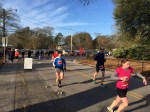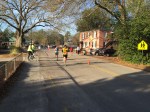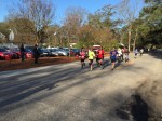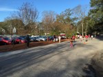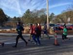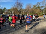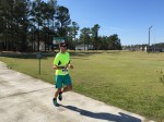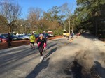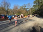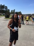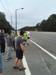 The 6 miles is mostly on the dirt Old State Rd. It is obviously close to Columbia but feels like its in the middle of nowhere. The road is blocked off from vehicles so its just me, the mud, and neon dude in the distance. It rained a lot in the hours leading up to the race, so it’s hard to lock into a pace with all the puddle jumping. You do not want to get wet shoes and get a case of swampfoot brewing for 24 hours in an enclosed van. That was last year. I was trying to hit 6:45 but getting all excitable in the beginning led to a 6:20 something. I’d better rein in in if I’m doing 18 miles. The next few miles kind of suck – it’s dead quiet and neon dude is slowly leaving me for dead. At least its mostly flat. In a weird coincidence I suddenly find myself on the 5k course for the March for Meals. Makes me think about Brandenburg inevitably upping his masters lead on the TDC this weekend. Four miles in I have to do a complete stop to do some rural parkour over a concrete barrier blocking the path and its tough to get going again, but at least I’m back on concrete. I do peek over my shoulder and there’s one guy way off in the distance. Mile 5 is on asphalt but has a painful overpass of I-26 which about kills me. Of course my van gets to see me dying on the hill, my form already going to hell. One last turn just past the 5 mile mark, and I’m pretty close to 6:45 pace. I suddenly get scared the dude behind me may be some beast and tracking me down, so I throw down pretty hard. The last stretch is on Charleston highway, filled with huge trucks and lots of traffic, so I’m dodging onto the shoulder every chance I get. Finally I get a break in the traffic so I can cross over, and I’m sure these people are convinced the Sasquatch myth is real. I’m sucking wind pretty bad but I gotta look strong in the exchange zone. Yeah, not so much. I give Brandon the bracelet at the Kangaroo zone and I’m pretty much toast. Six miles in 40:06, 6:41 pace. Man these other legs are going to be rough.