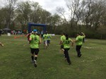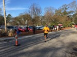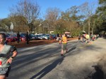 With the start, Geary comes tearing out of the gates in the lead and we have to high tail it to the first exchange zone, where I’m up for my first leg, a 6.05 miler. This is the dreaded poop zone, next to the water treatment plant. What’s worse is that everybody and their mom has already gone through and committed unholy sins in the 2 provided porta potties. Those images still scar my mind. Thanks to Barefoot John’s family (wife Char and dad Andy) for providing some emergency TP and being a race volunteer. The girl from 50 shades comes through first out of the forest and some lanky 20 something in neon orange blasts out of the zone. About 20-30 seconds later here comes Geary in a full sprint and off I go.