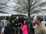 On top of that, we were the walking wounded. Enterprise gave us a black van for Van 2 this year, and we immediately named it ‘The Hearse”. David “D-Mac” McNiece was nursing a nasty ankle injury , Brian had a gimp knee following a marathon DNF, and Joel had a tweaked hamstring. Oh, and Julie was in the ER with possible appendicitis less than a week earlier. And they kept it in. I told her my surgical skills were a little suspect this far out from medical school, especially with a headlamp and a pocket knife. But hey, girl’s gotta have priorities. Jen Clyburn was less than 3 weeks out from her BQ 3:28 marathon and perennial ringer Andy McNiece was supposedly not in the peak of shape either. Van 1 was praying to the relay gods that one of our gimpy brethren would not drop out and make us run a dreaded 4th leg.