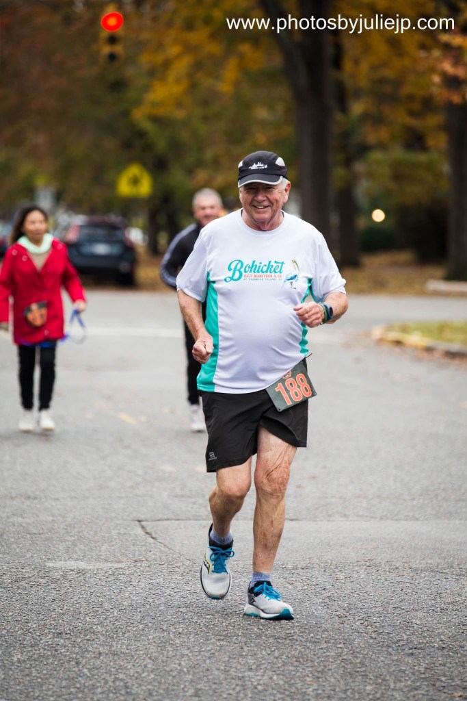 Female age group honor roll: Cooper “HONEYBADGER” Robbins won the 11-14 a day after winning her AG on Thanksgiving day at BGCM. Two races in two days?…Honey badger don’t care. Sara McFall was 1st in the 35-39 despite being a late turkey victim. Kelly Cox was 3rd in the 40-44. Shelley Rivers was 3rd in the 45-49. Running buddies Shenequa Coles and Angie Thames went 1-2 in the 50-54. Renee McCormick was 2nd in the 60-64. Melody Kreiling, Carol Wallace and Beverly Breuer swept a brutally competitive 65-69.