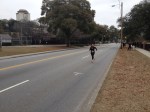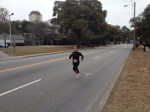 The trail is pretty funny. Total swamp. I tried to avoid all the huge swaths of water, and when I did that I stepped off the trail into ankle deep snow and leaves. Ridiculously slow. Almost walking at times. I was tippy toeing like a sasquatch ballerina on all the declines, some of which were covered in slush. I was just waiting for a wipeout. Whats worse, Touzel flies by me at some point. Oh hell no. I give Andrew the “Sydney Frontz at Safe in the City” treatment and eventually he releases himself from the breathless gorilla chasing him through the jungle. Finally the trail gets a little cleaner so that helps the speed. I feel surprisingly fresh for a 5k, probably because I’ve just completed mile one in 8:15. I’m able to throw in some good speed bursts and I start making up ground on teenage kid and very tall half moon shirt guy – the 2 ahead of me. Every time I get some speed going though, I have to stop and trudge through some slop straight from the Dagobah system. I’m actually liking the hills because at least I can be a little more aggressive and not worry about footing as much. I keep thinking about how much this will suck the second time around. Or is there a second time? I haven’t seen any markers. Suddenly I come upon a deep stream, about 10 feet across. Definitely not jumpable, especially for distance runner white dudes. Two or three steps, almost knee deep in this stream. Jenny loved the stream too – see: