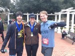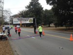 Instantly the shoes weigh a pound heavier and are numb from the sub arctic water. Awesome. Next time I wont be such a pansy ass road racer and just plow through the mud the whole time. Some guy on the trail gives us directions around mile 2 and I start recognizing the last part of every race at Harbison – a couple of nasty inclines leading to a flat tree-lined gravel road. I blast past teenager and half moon on the hill and start cruising towards the finish area, where I’m sure there must be another little loop or something. Nope. I make a turn and bam, there’s the clock. I finish almost right at 21 minutes, which I know is a joke, since I was doing what amounts to a brisk power walk through some of that slop. Yep – About 2.6 miles by Garmin. I cant tell but it looks like I’ve finished 5th? Alejandro, Meg and Hunter are at the finish and they both confirm we’ve run a super short course. But where is Geary? He was definitely ahead of me. Teen, half moon and Andrew come in a little later and then there’s a long time of nobody. Ruh roh. Stephanie Dukes comes in and she says her course was short too, but where is everyone else? Turns out the 5k has turned into a complete cluster. 5kers continue to come in over the next 45 minutes or so, quite a few after some of the 12kers finish. Distances range from our 2.6 up to almost 7 miles. People are muddy and none too pleased. Some did the “creek fording” 3 times. Luckily the 12k apparently went off without a hitch, and I didn’t hear of any misdirects in the longer event.